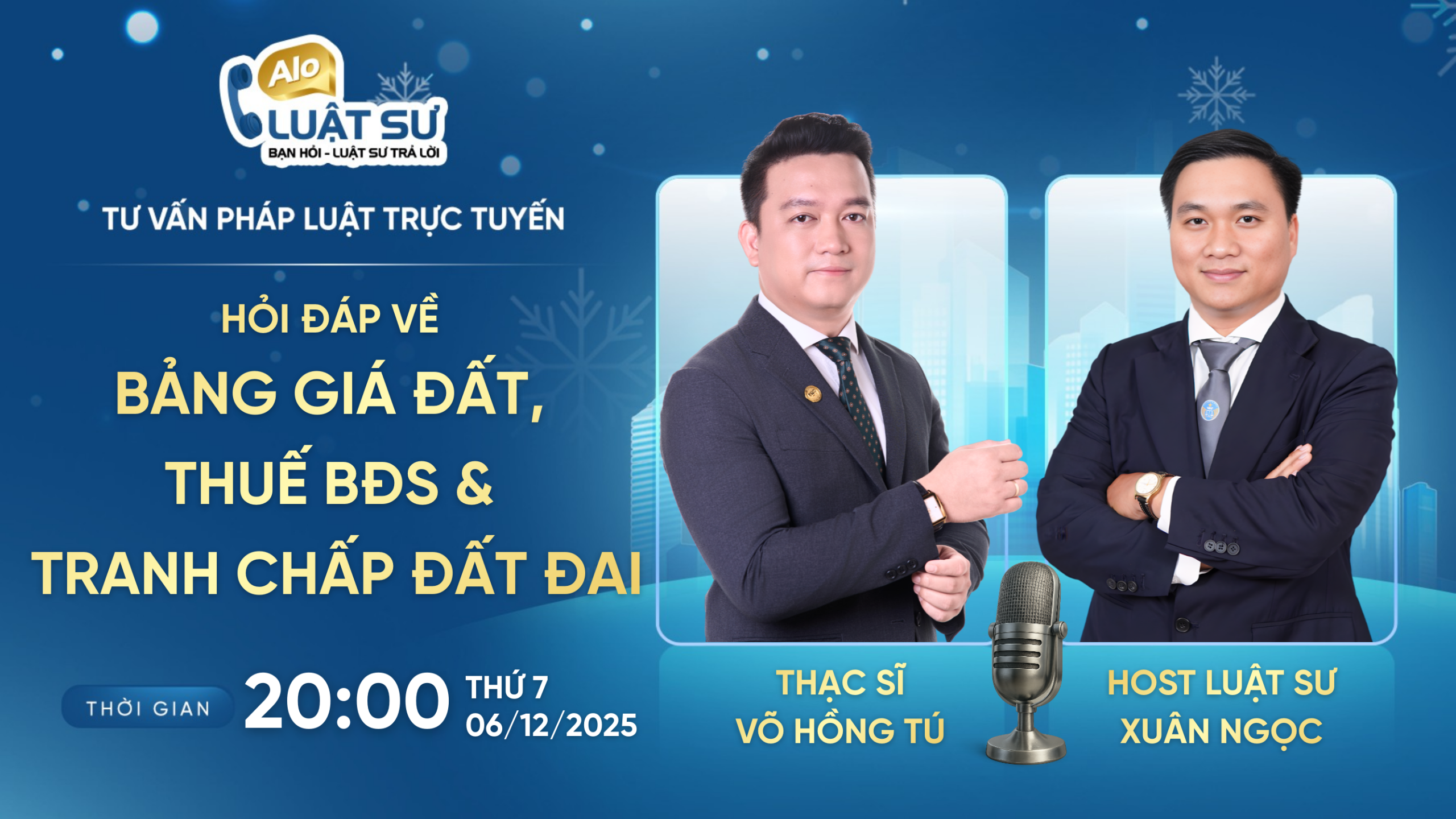 Thời gian phát sóng: 20:00 – Thứ 7, ngày 06/12/2025 trên Fanpage Luật Minh Tú, TikTok và YouTube ThS. Võ Hồng Tú.